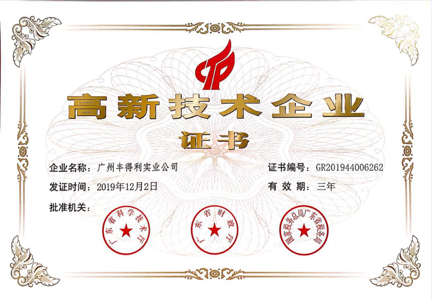 本公司歷經(jīng)20多年的發(fā)展,近日我公司有獲得由廣東省科學(xué)技術(shù)廳、廣東省財(cái)政廳、國家稅務(wù)總局廣東省稅務(wù)局聯(lián)合頒發(fā)的高新技術(shù)企業(yè)證書。本證書是自2015年成功申請(qǐng)的證書及廣州市創(chuàng)新小巨人企業(yè)以來的重新再認(rèn)定(新證書編號(hào):GR201944006262)。