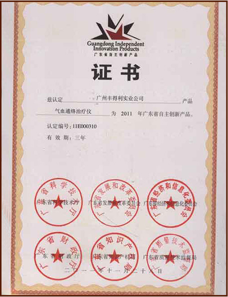 1、合正氣血通絡治療儀已獲得廣東省科技廳、廣東省發(fā)改委、廣東省知識產(chǎn)權(quán)局、廣東省經(jīng)濟和信息化委員會、廣東省財政廳、廣東省質(zhì)量技術(shù)監(jiān)督局頒發(fā)的廣東省自主創(chuàng)新產(chǎn)品獎。